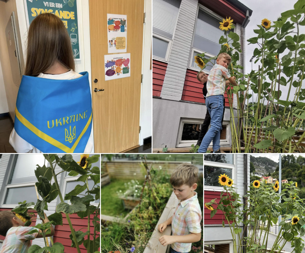 I Draumehagen vår samla elevar frø som me kan så til neste vår? Og dei høgaste solsikkene våre vart målt til heile 2,30 m!!!?