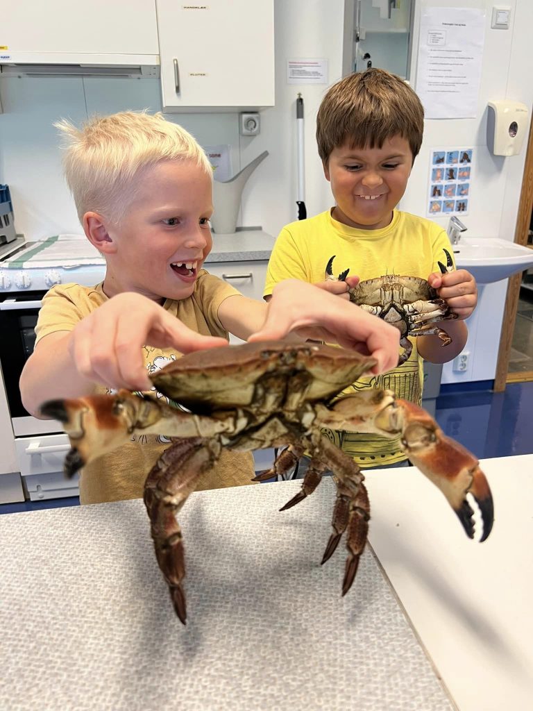Siste prosjektveke med vått og til dels vindfullt ver Mykje godt arbeid i gruppeneForsøk, bruk av Nysgjerrigper-metoden, artsbøker, studie av både laks og krabbe Takk
