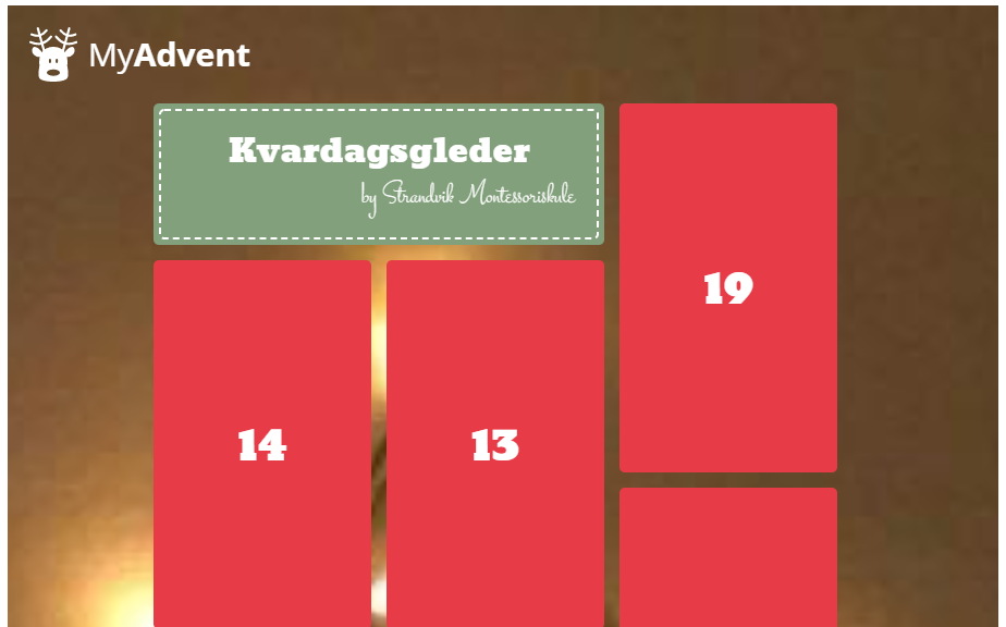 Følg vår julekalender i desember – saman skapar vi kvardagsgleder Klikk på denne linken så kjem du til julekalenderen https://calendar.myadvent.net/?id=c891b74826a99febef6d7ea158ae93b8
