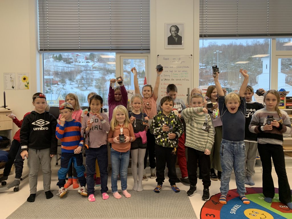 Ein jublande gjeng som vant mobilitetsveka i Bjørnafjordeen kommune. Det var stor stas å få melding om at gr. 1 hadde vunnet konkuransen som gjekk