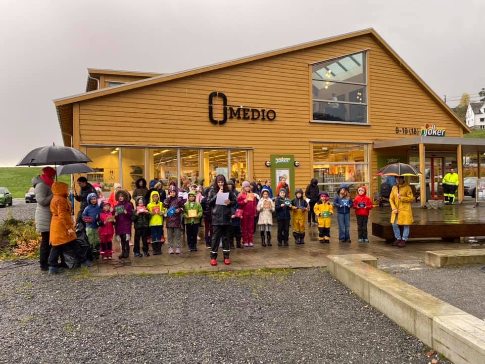 FN-dag og TV-aksjon? Fredag 22.10, inviterte skulen til markering i Strandvikparken?? Regn og rusk stoppa ikkje oss ? Takk til alle frammøtte! Dei fekk høyra