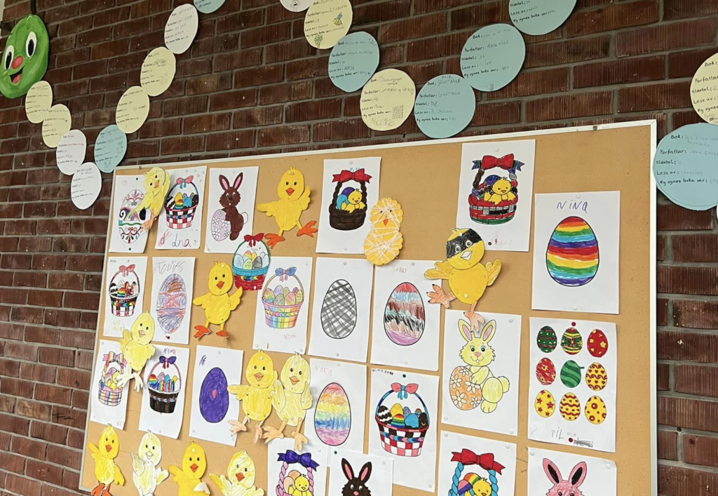 Leseveke. Påskemysterie. Nydeleg påskelunsj. Takk til små og store for ei flott veke! Me ønskjer alle ei strålande påske Fleire bilete finn du på Facebook