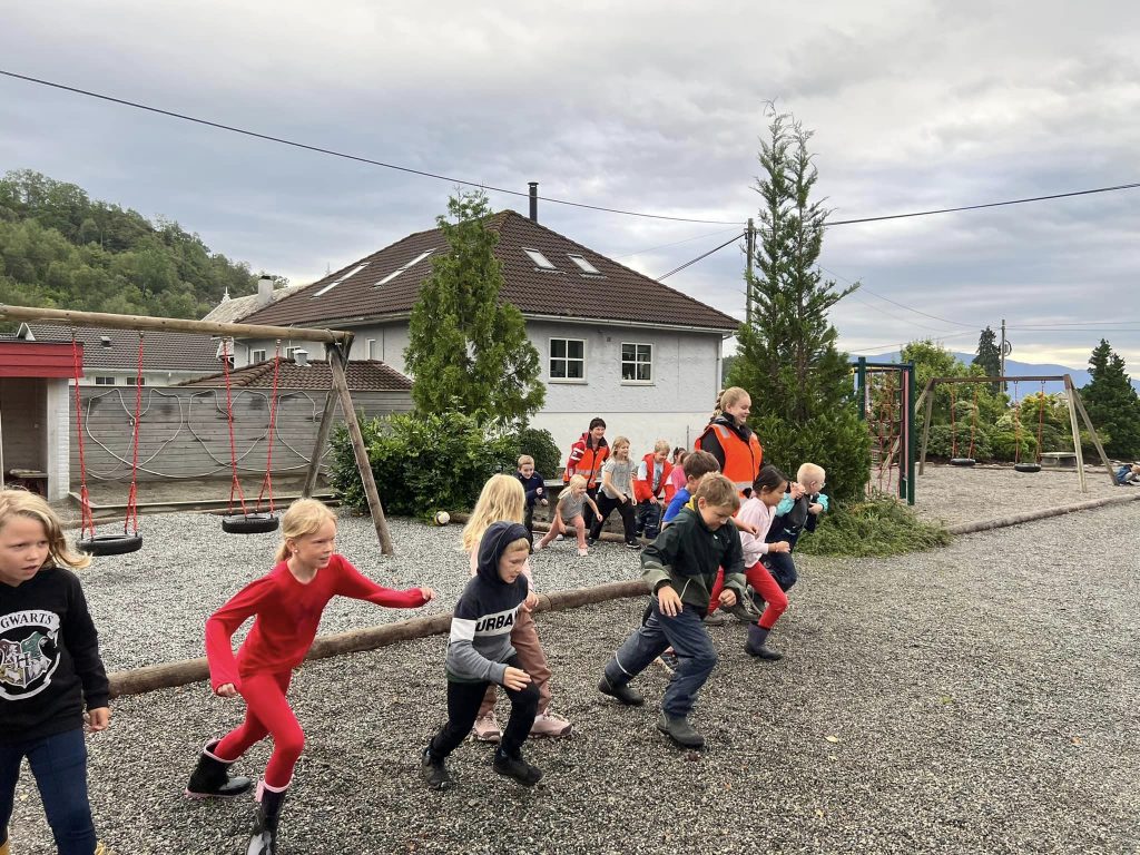 Torsdag 25.08 ~ Uteskuleaktivitet med gruppe 1 i det fine nærområdet vårt 🤩 Fellesleik og samarbeid i fokus 💖 Flott innsats 👏