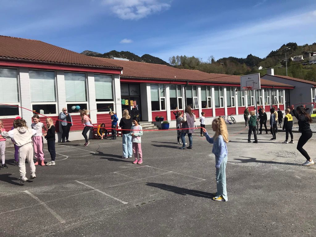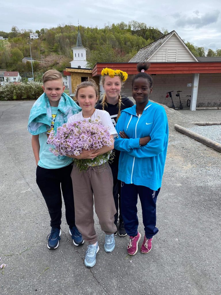 Med denne flotte buketten frå ivrige blomsterplukkarar, ønskjer me alle ei strålande veke 🤩I mat og helse sist veka vart elevane utfordra på bruk av restemat og mykje godt vart trylla fram 😋 Og i kvar utetid er det flott innsats i « Hopp for hjerte»☺️